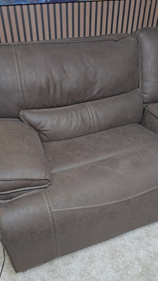 -1223- Like New- Ashley Power Reclining Gray Fabric Loveseat with Console
