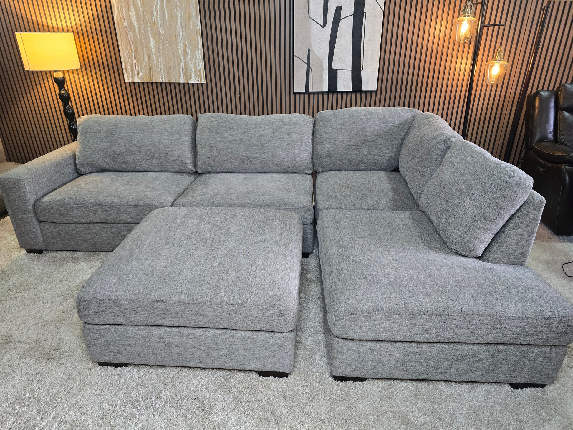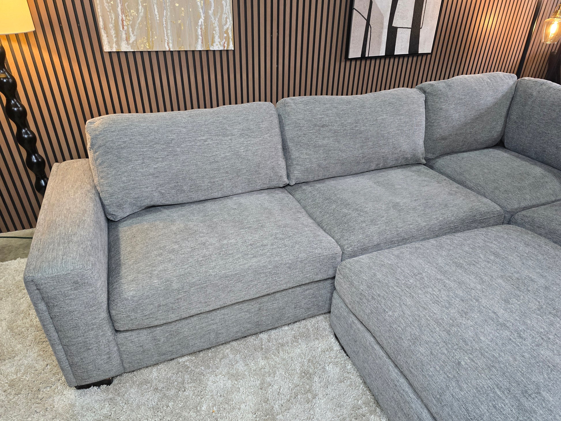-1223- Excellent Condition - Modern Maycen Fabric Gray Sectional with Ottoman