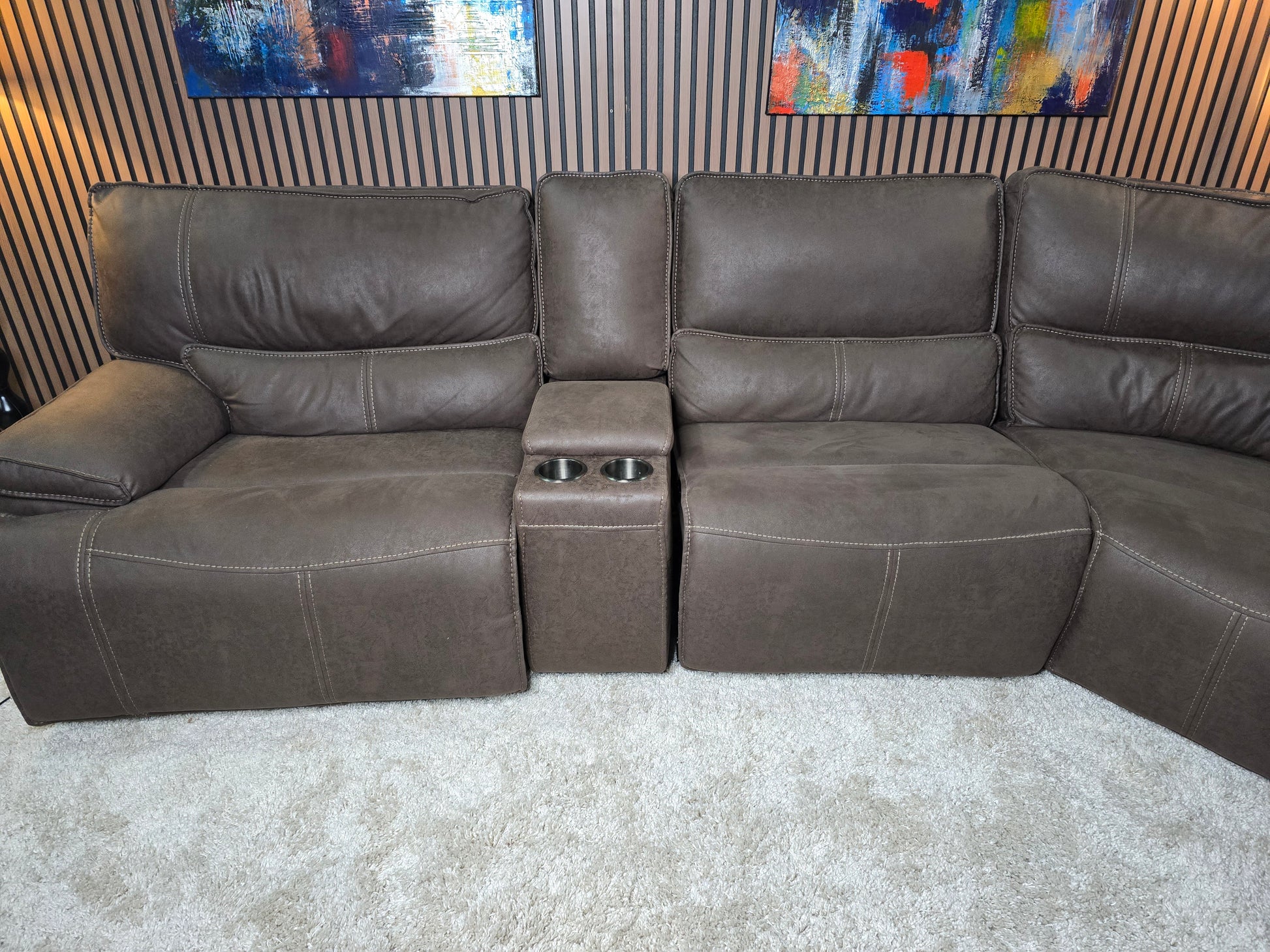 -1223- LIKE NEW- 6 Piece Brower Fabric Power Reclining Sectional with Power Headrests