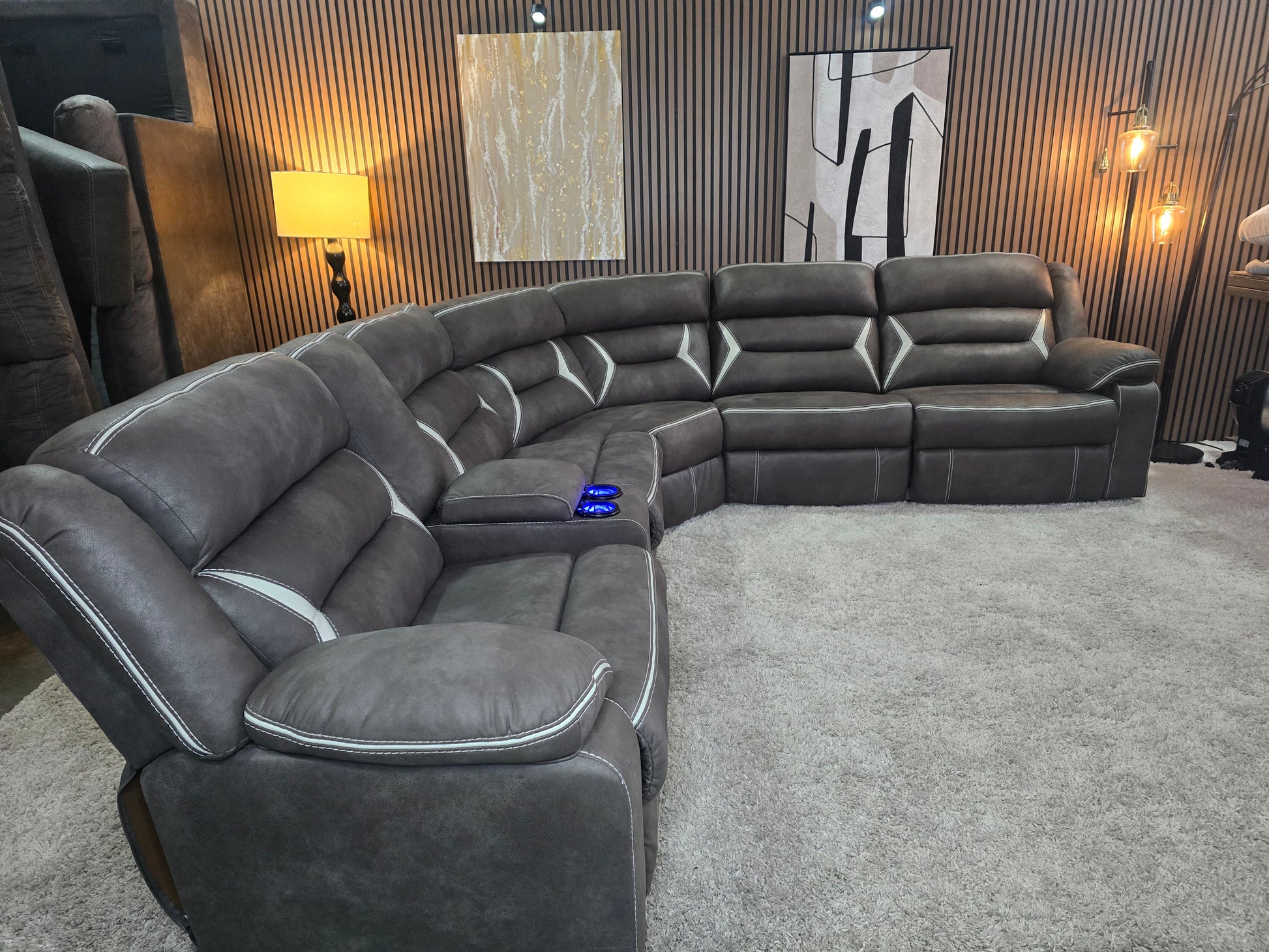 -1223- Like New- Kincord Midnight Color Modular Power Reclining Sectional with Console