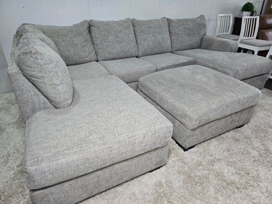 LIKE NEW- Modern Dark Gray Thomasville Tisdale Fabric Sectional with Storage Ottoman