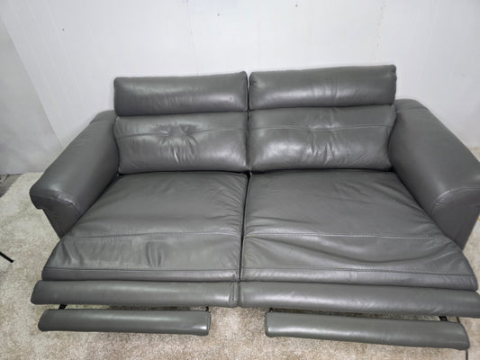 Gray Modern Real Leather Dual Power Reclining Loveseat