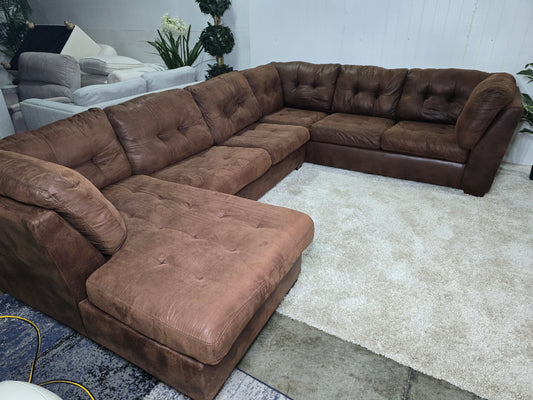 Z- Ashley Large 3 Piece Brown U Shape Sectional Pull Out Sleeper Sofa