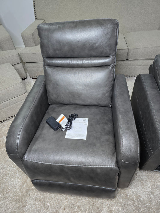 Like New - Power Modern Gray Leather Glider Recliner Chair